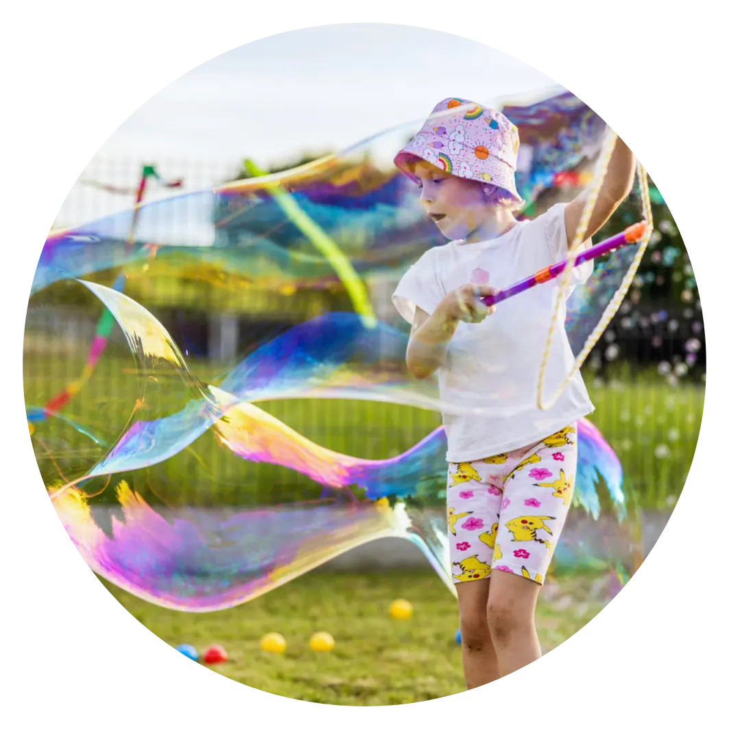 Olbrzymie bańki mydlane, które Dzieci nie tylko oglądają i gonią, ale i same tworzą z Naszą pomocą.
