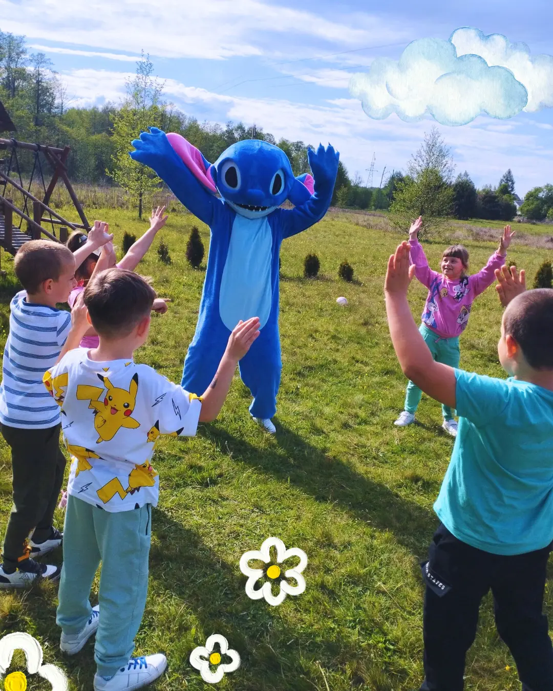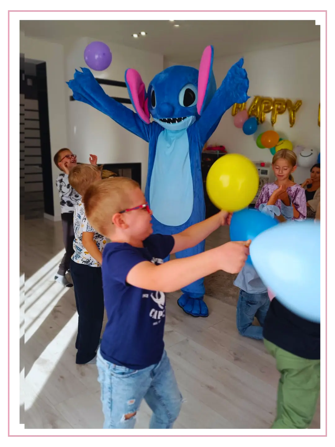 W Happy Kic animacje często są urozmaicane wizytami chodzących i radosnych Maskotek – Stitcha lub Króliczka Kejti. Dzieci je uwielbiają! To atrakcja, która ożywia wydarzenie, zachęca do wspólnej zabawy i integruje najmłodszych. Spójrzcie tylko na zdjęcia! 🐾